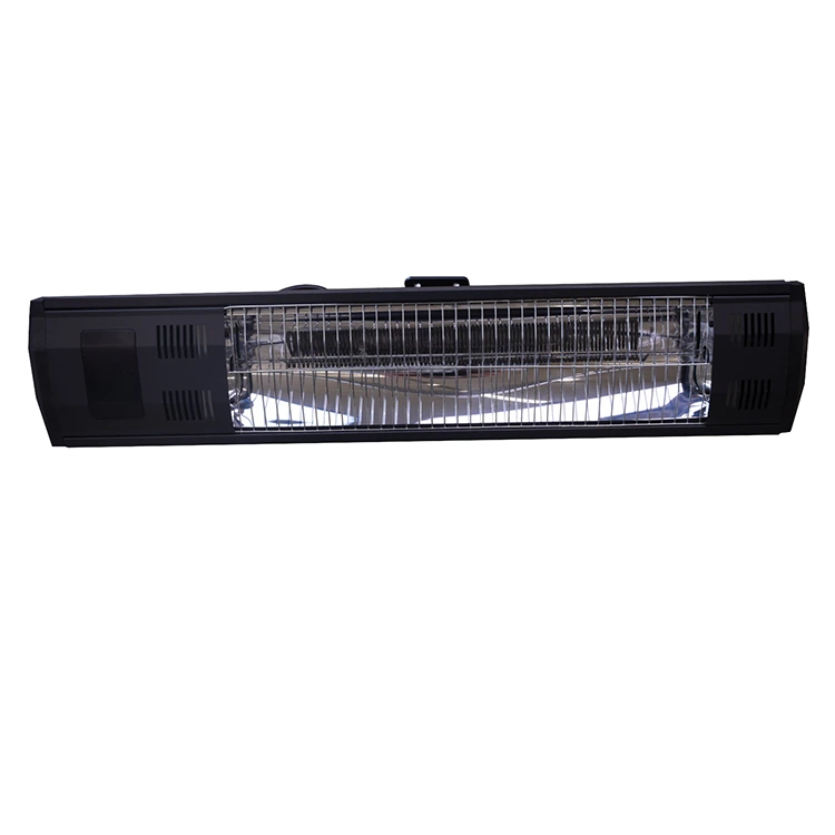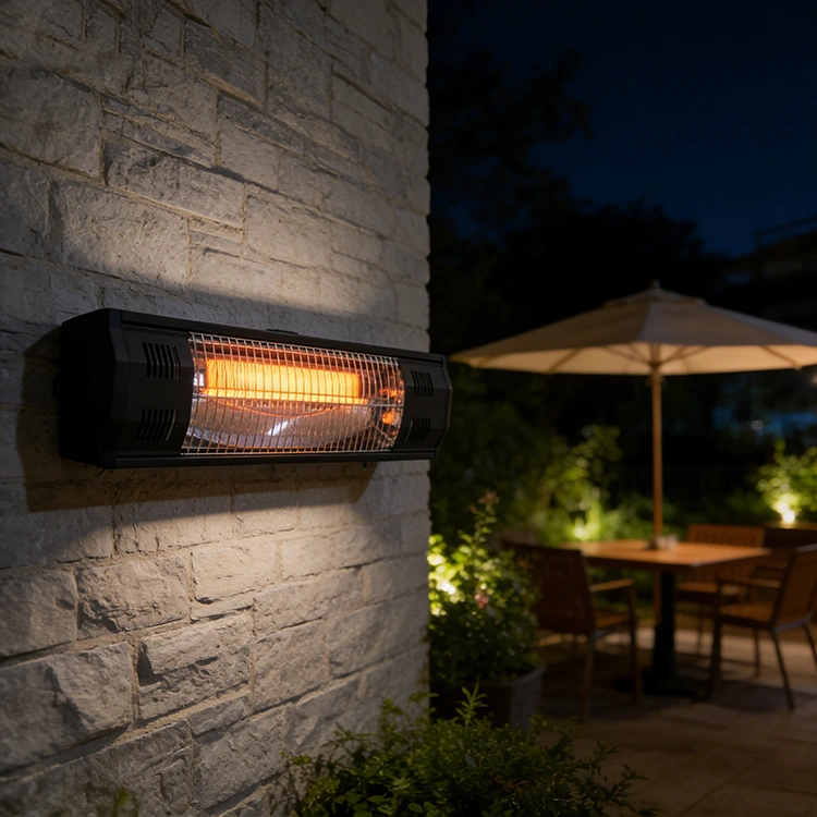 Pemanas teres bercahaya inframerah kuarza yang dipasang di dinding ini ialah unit pemanas luar yang licin, hitam dan memanjang yang direka untuk pemasangan dinding. Ia mempunyai tiub kuarza yang boleh dilihat pada terasnya, yang memancarkan kehangatan inframerah terfokus serta-merta, manakala selongsong moden berprofil rendah menyepadukan pilihan kawalan dwi (panel sentuh jauh dan lampu belakang) dan struktur bertaraf IP65 yang tertutup sepenuhnya untuk ketahanan semua cuaca. Pendakap pelekap boleh laras membolehkan keluaran haba berarah, dan reka bentuknya yang padat dan menjimatkan ruang digabungkan dengan lancar dengan mana-mana tetapan luar, memberikan pemanasan yang selamat, senyap dan cekap tenaga untuk teres, balkoni, teres restoran dan gazebo sepanjang tahun.